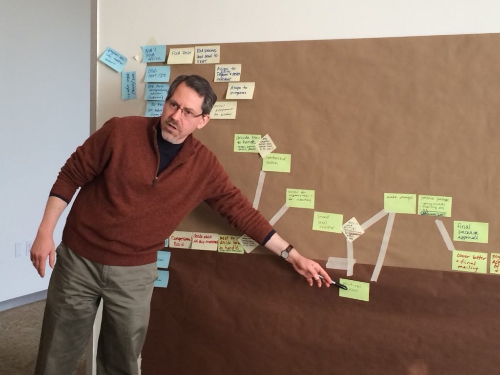 They talk about how long it takes to do each step, and what proportion of that time is waiting for someone to find the 10 minutes to get it done (answer: usually almost all of it). They even estimate what proportion of the work is really what the customer or client needs and how much is for regulatory documentation or the lawyers (…only 25% for the client? No! I knew it was bad, but it’s not that bad! Is it??…) Regardless of whether your project is in-person or virtual, compressed into a few days or spread out over months, sooner or later there comes a time when it feels like all this attention to problems is exactly the wrong way to go about finding a solution.